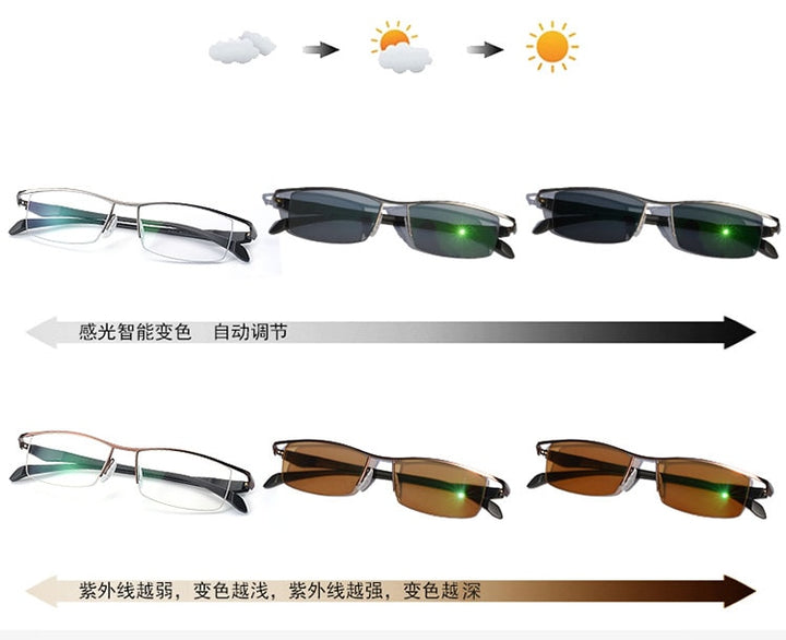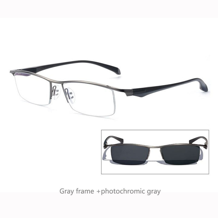 Introducing our Men's Half Rim Titanium Frame Eyeglasses Photochromic P8011, a perfect combination of style, durability, and functionality.