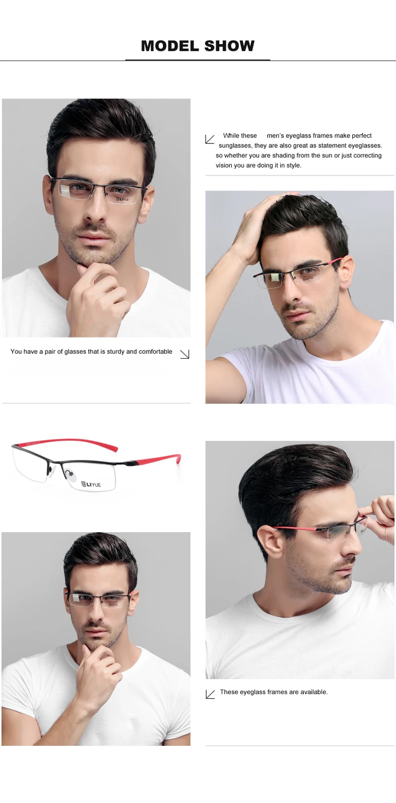 Upgrade your eyewear collection with the Oveliness Men's Semi Rim Square Alloy Eyeglasses 8199. These stylish eyeglasses combine fashion and function, making them the perfect accessory for any modern man.