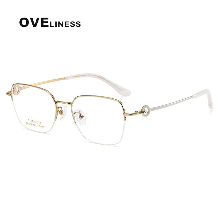 Elevate your eyewear collection with the Oveliness Women's Semi Rim Square Polygon Titanium Eyeglasses today!
