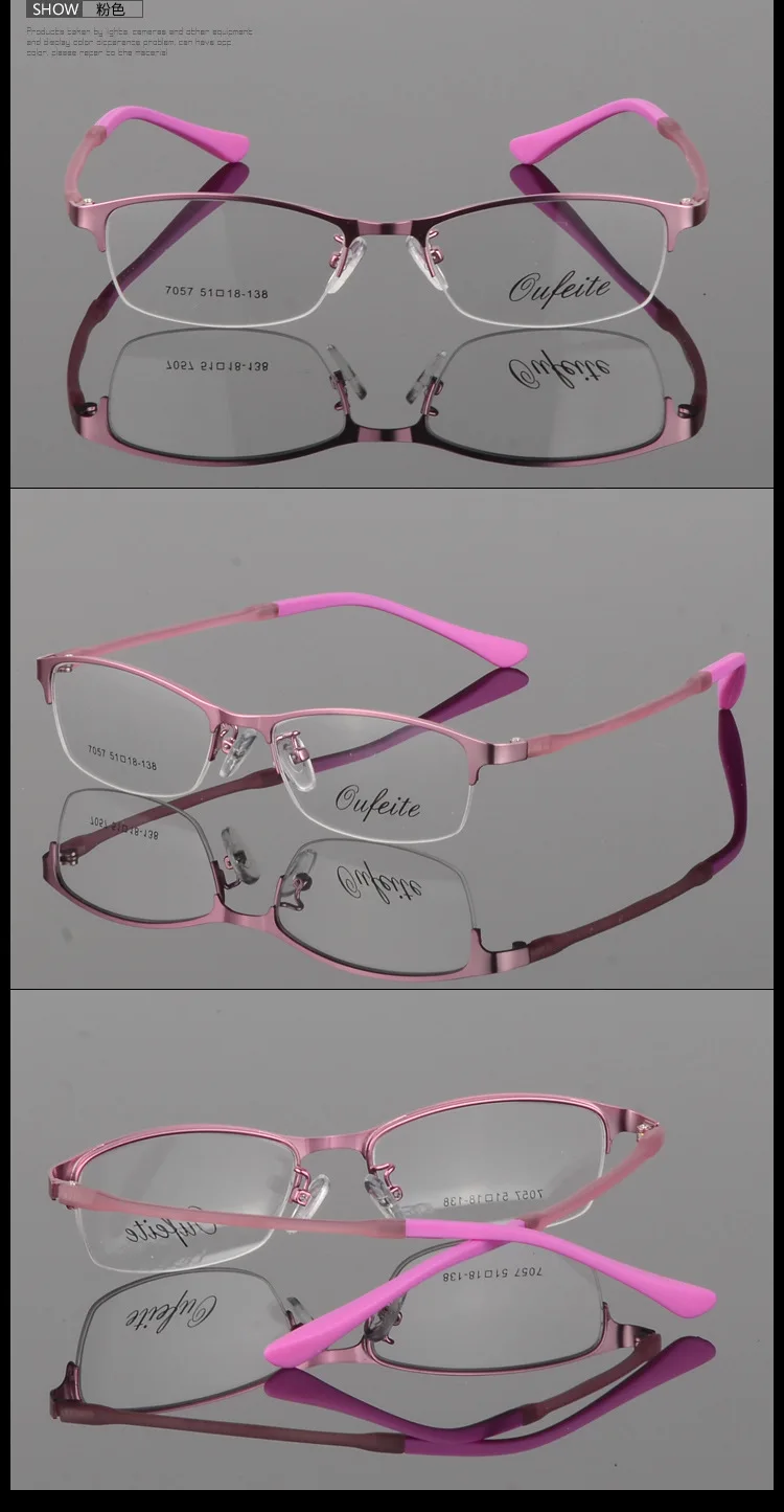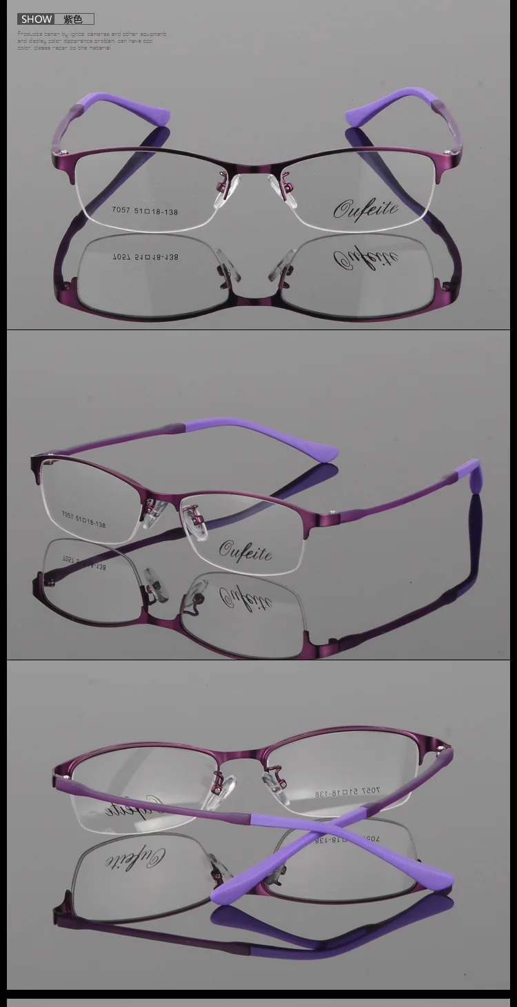 The Women's Eyeglasses Alloy Frame Half Rim Tr Legs Mod 7057 is not only a fashion statement but also a reliable eyewear essential. Crafted with attention to detail, this eyeglass model meets all necessary quality standards and is certified with CE.