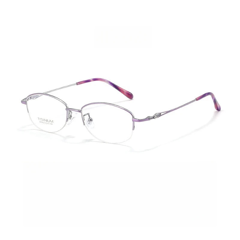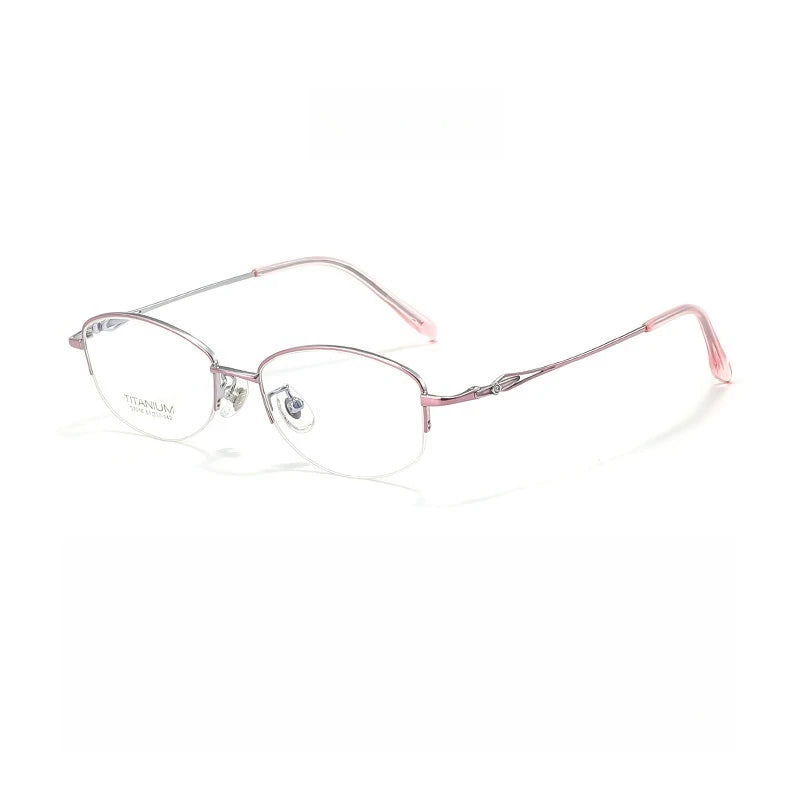 Experience sophistication at its finest with these women's eyeglasses that showcase a semi-rim square oval shape, designed to complement various face shapes. The lightweight titanium material offers both sturdiness and comfort for prolonged wear.