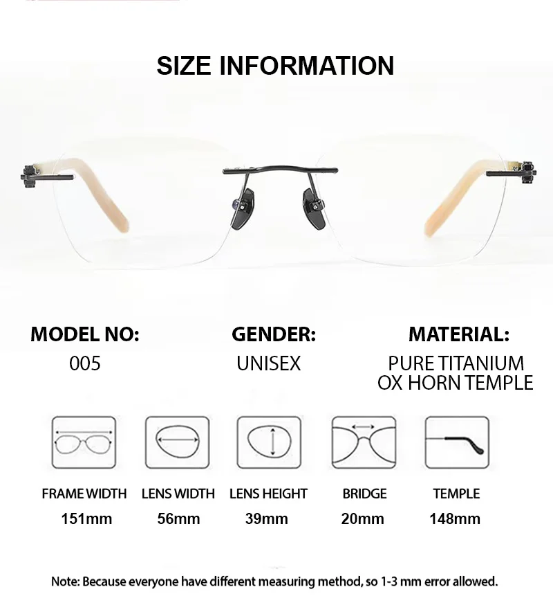 - High-Quality Materials: The titanium frame and ox horn temple tips ensure long-lasting use while providing a luxurious feel.