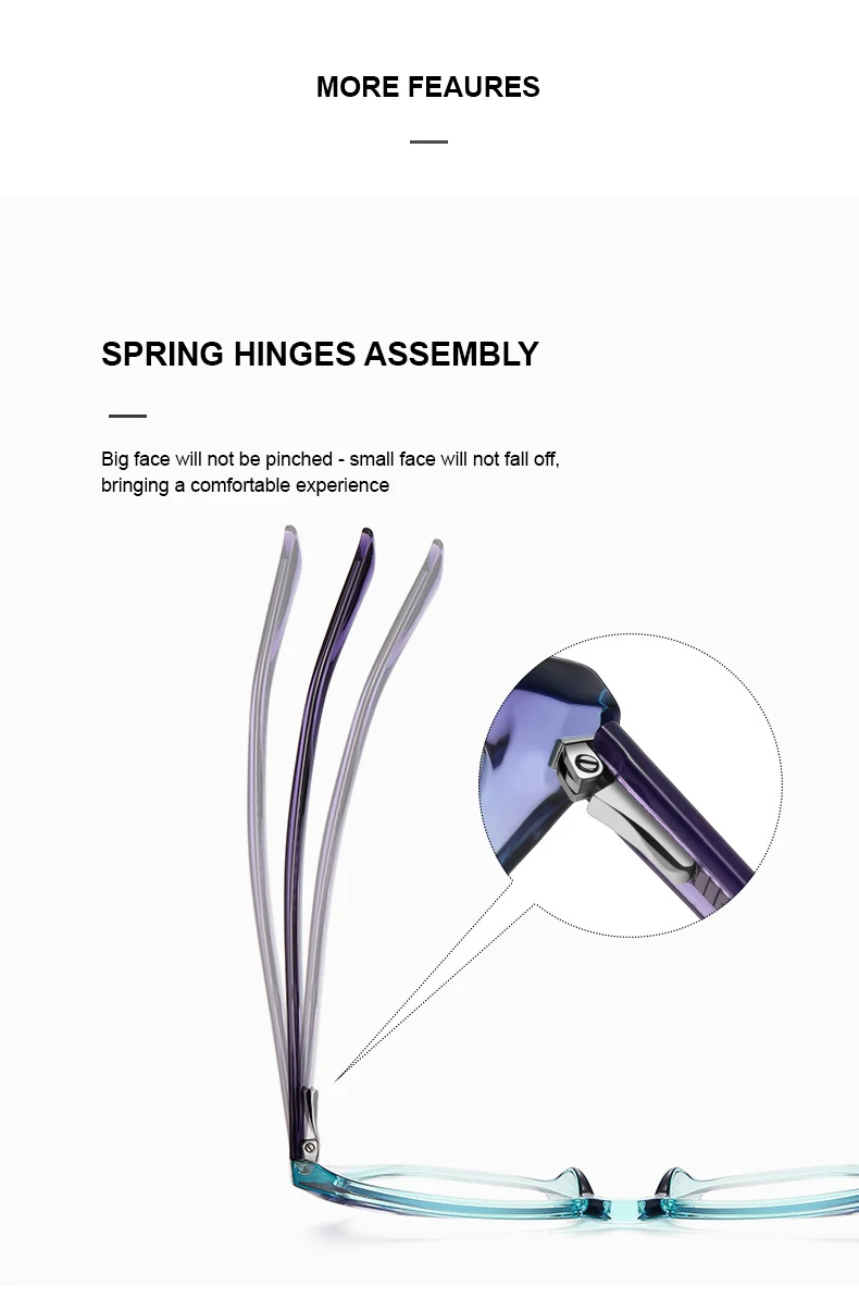 - Comfortable Fit: Spring hinge temples offer a flexible fit, making them ideal for all-day wear.