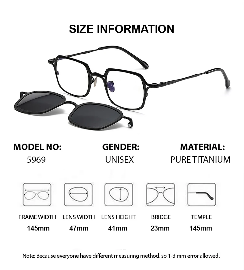 - Includes polarized titanium magnetized sun clips that provide excellent UV protection.