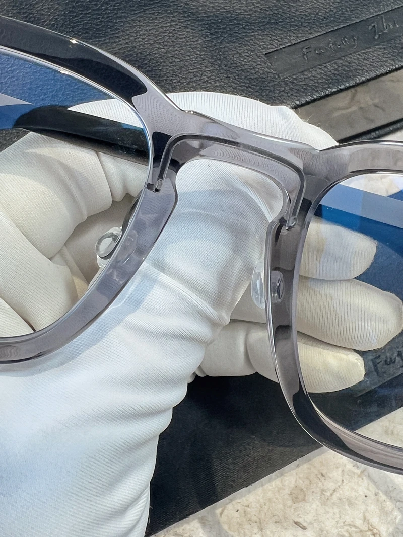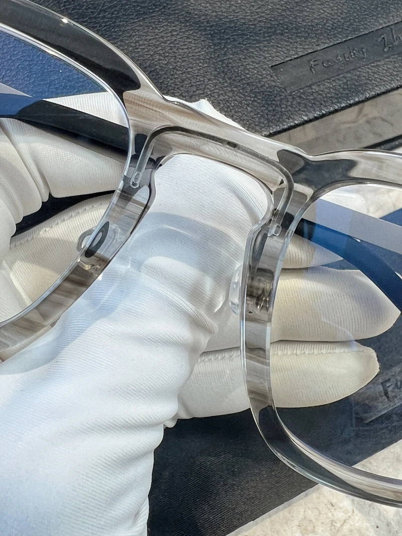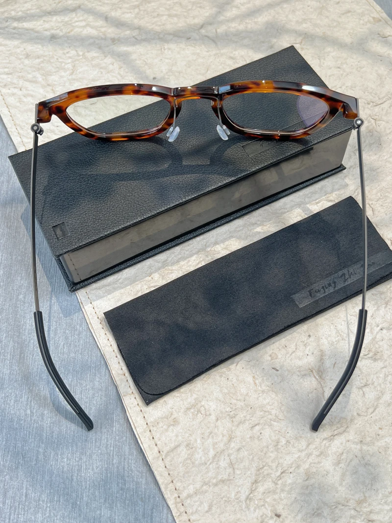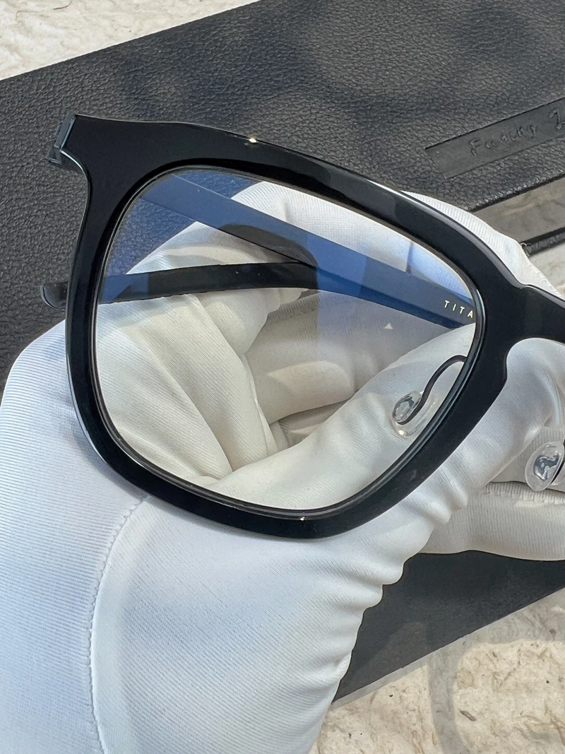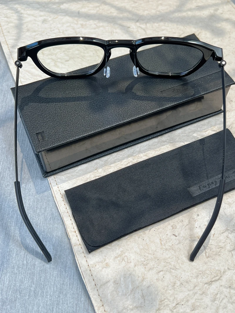 Crafted from a combination of high-quality titanium and acetate, these eyeglasses are not just about aesthetic appeal; they are designed for durability and comfort. The frame width is 148mm, offering a comfortable fit for a variety of face shapes.