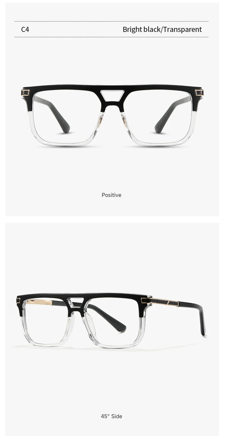 Styled with a double bridge and a modern square shape, these glasses are designed to make a statement. The spring hinge temples provide added flexibility and comfort, adapting to your movements seamlessly.