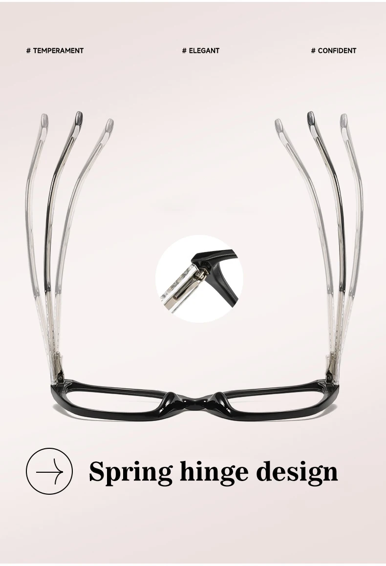 - Lightweight TR 90 + Alloy Frame: Designed for comfort during prolonged use, featuring spring hinge temples for added flexibility.
