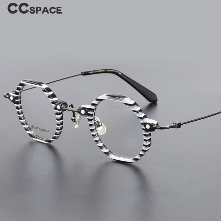 Upgrade your eyewear game with the CCSpace Unisex Full Rim Polygonal Round Acetate Titanium Eyeglasses 55345. Designed for style and comfort, these eyeglasses are the perfect accessory for any outfit.