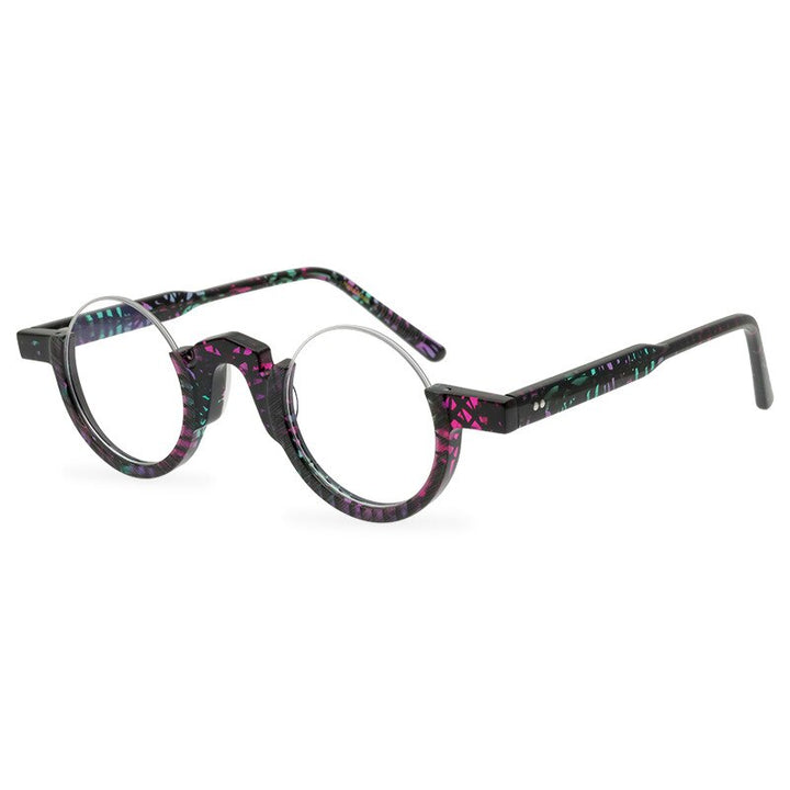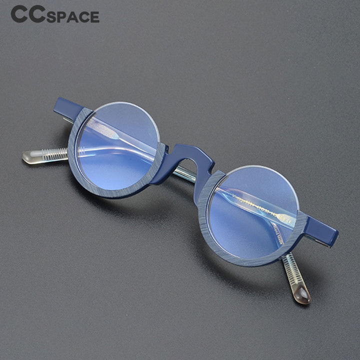 The CCSpace Unisex Semi Rim Round Acetate Eyeglasses 55258 feature a trendy print pattern, adding a touch of uniqueness to your overall look. Whether you're heading to the office, a casual outing, or a special event, these eyeglasses will effortlessly complement any outfit.