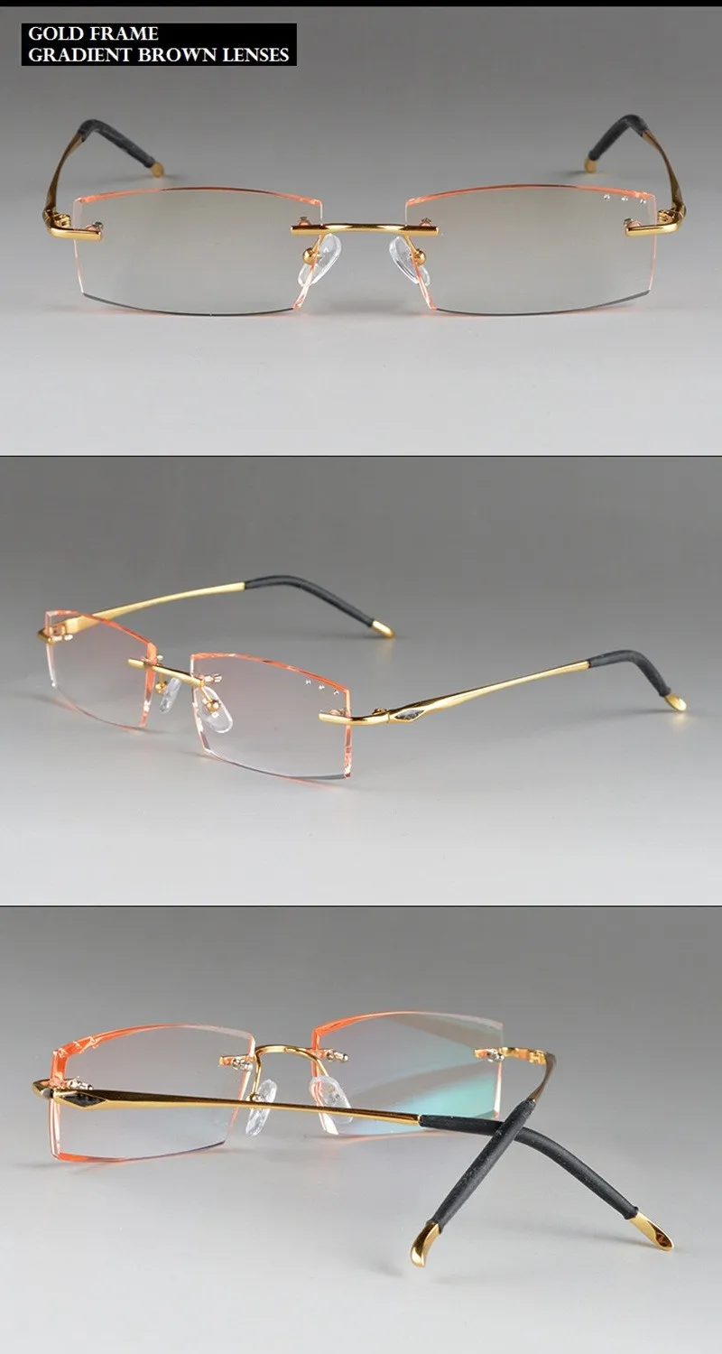 Chashma Ottica Unisex Rimless Square Rectangle Titanium Eyeglasses Tinted Lenses 65077