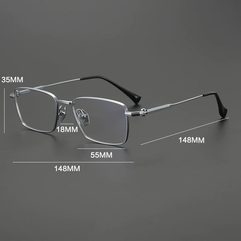 Crafted from pure titanium, these eyeglasses are not only lightweight but also incredibly strong, making them ideal for everyday wear. The full rim design offers enhanced protection for your lenses and a modern aesthetic that suits any face shape. With a frame width of 148mm, they provide a comfortable fit for both men and women.