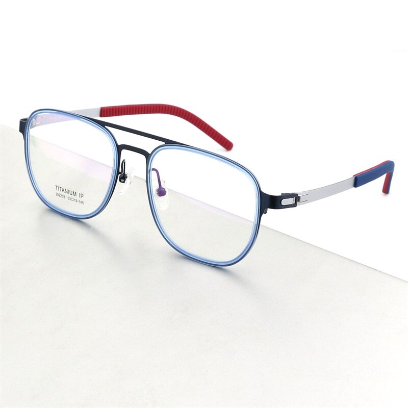 Introducing the Hdcrafter Unisex Full Rim Square Double Bridge Titanium Eyeglasses 2202 - the perfect eyewear accessory for both men and women who want to make a stylish statement. Crafted with precision and sophistication, these eyeglasses are designed to enhance your look and provide superior vision.