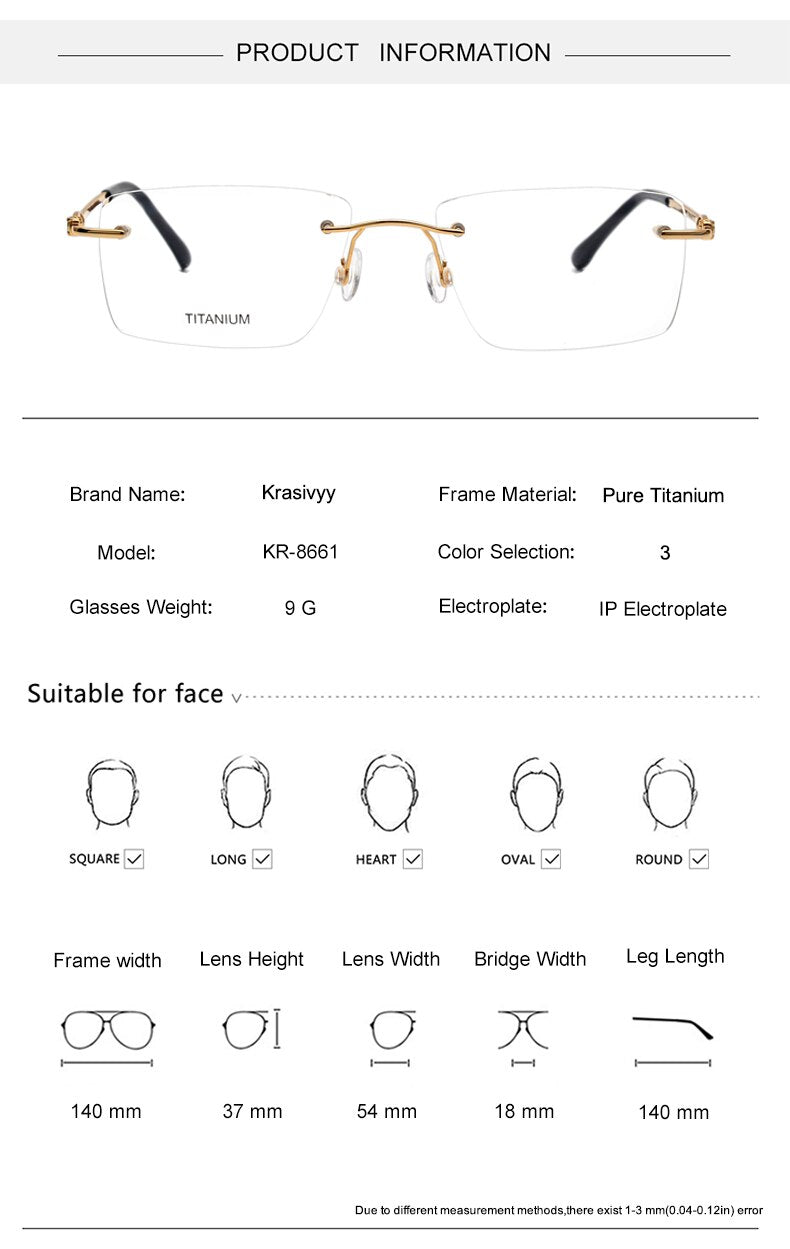 Constructed with high-quality titanium, the frame of these eyeglasses offers unparalleled strength and lightweight comfort, making them suitable for daily wear. The rimless square design adds a touch of sophistication, while the unisex style ensures versatility for anyone.