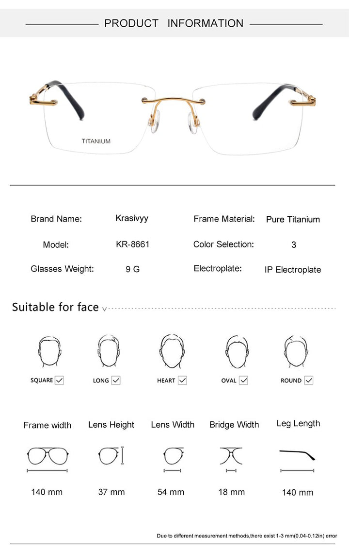 Introducing the Krasivyy Unisex Rimless Square Titanium Eyeglasses KR8661, the perfect blend of style, comfort, and durability. Designed with precision, these eyeglasses are a must-have accessory for both men and women.