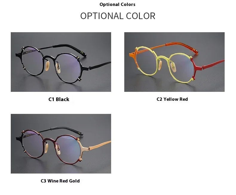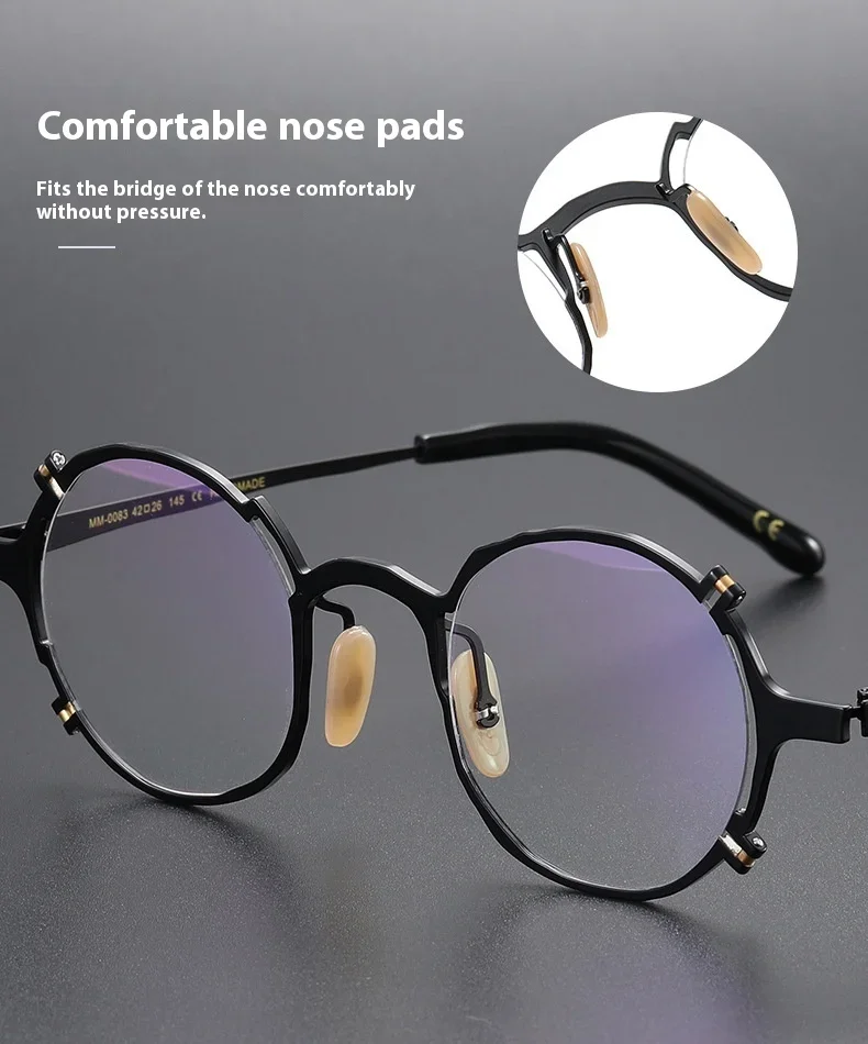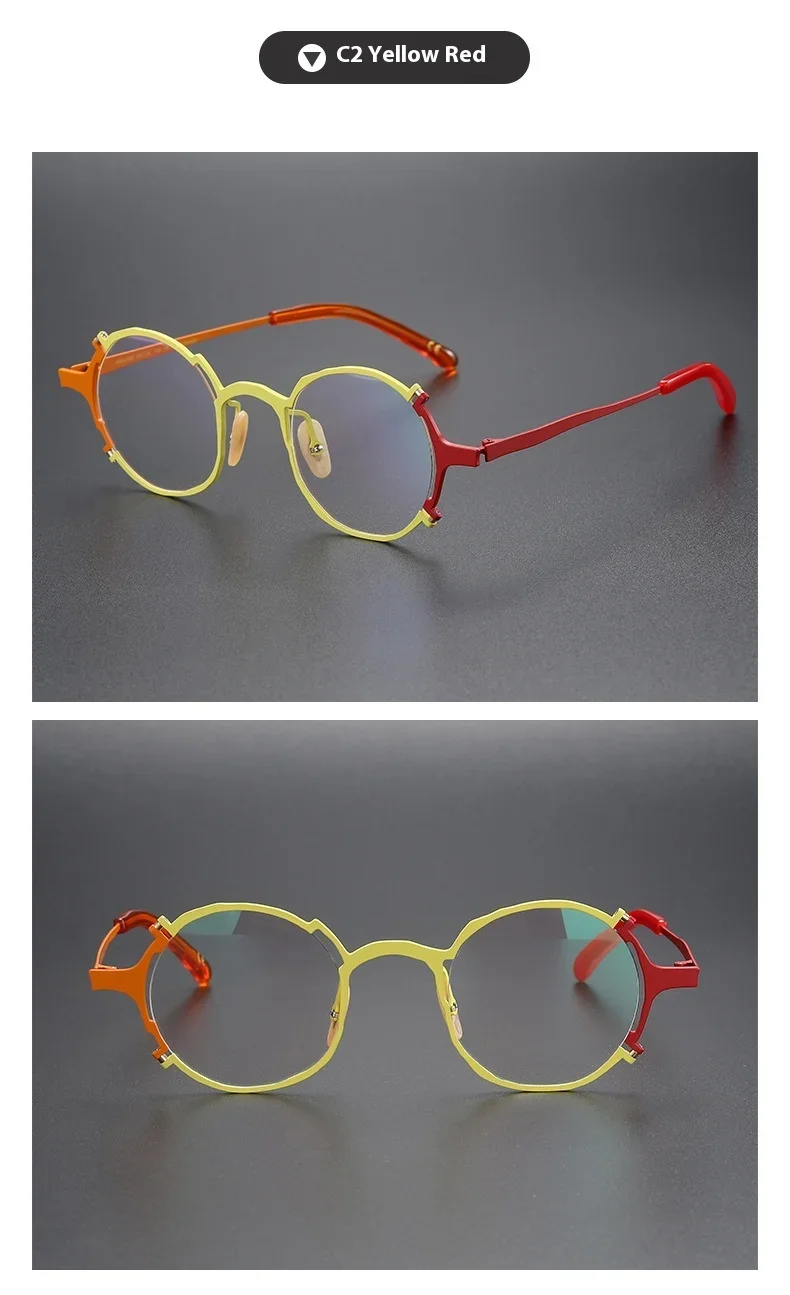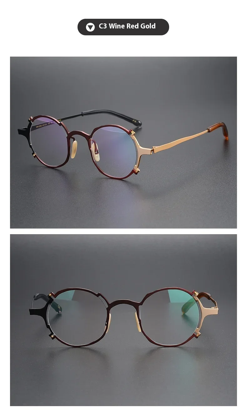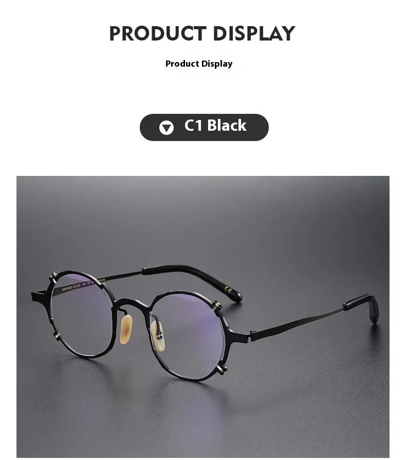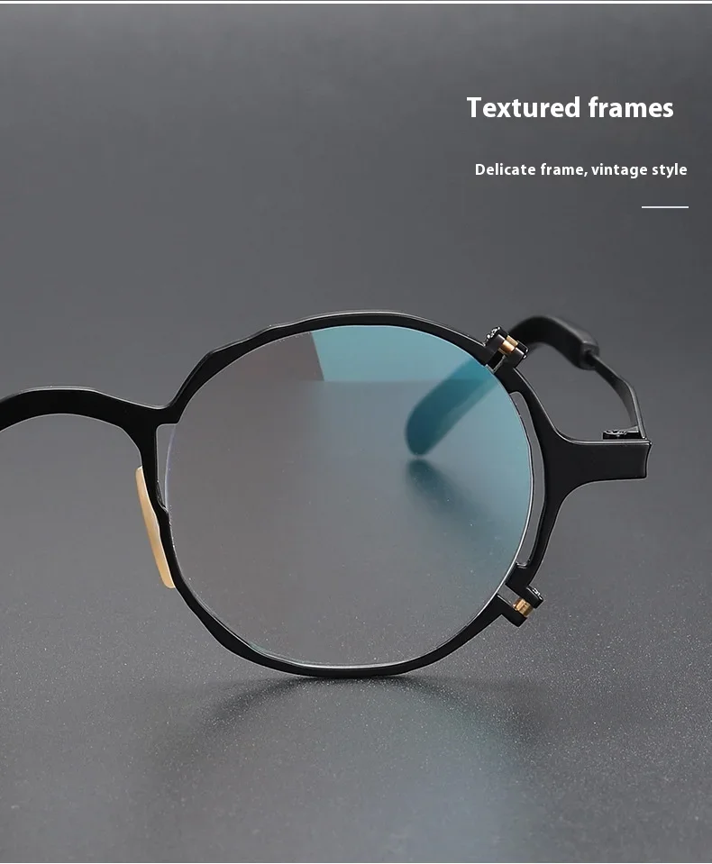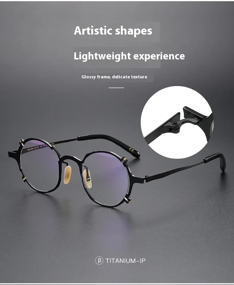 Crafted from premium titanium, these eyeglasses are not only lightweight but also incredibly durable, offering exceptional strength without the bulk. The unique irregular round shape adds a modern twist, making these glasses perfect for fashion-forward individuals.