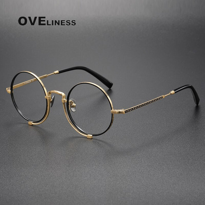 Introducing the Oveliness Unisex Full Rim Round Titanium Eyeglasses 1013h - the perfect eyewear accessory for the style-conscious individual. Made with high-quality titanium frame material, these glasses offer both durability and sophistication.