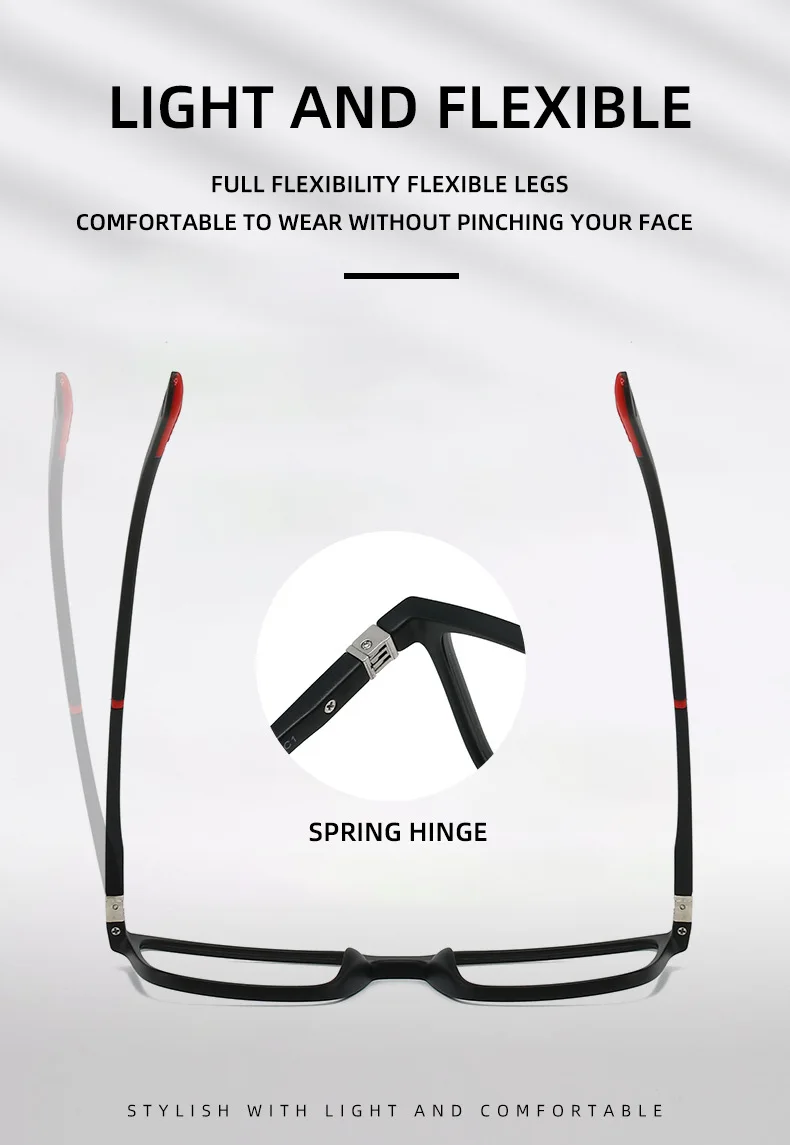 Crafted by the reputable brand Xbora, these eyeglasses offer an ideal blend of comfort and durability. The frame is made from premium TR 90 material, paired with alloy spring hinge temples, ensuring a lightweight yet sturdy feel.