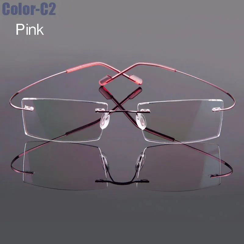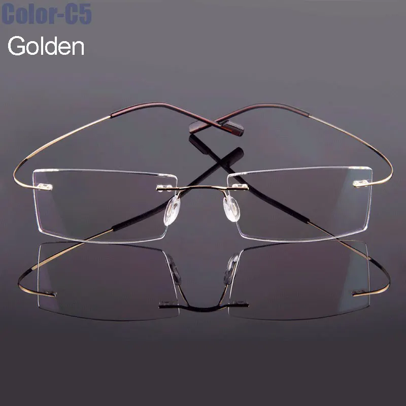 The frames of these eyeglasses are made from lightweight and durable titanium, providing a comfortable fit that lasts all day. The rimless design adds a touch of modernity, making these eyeglasses a versatile choice for any occasion.