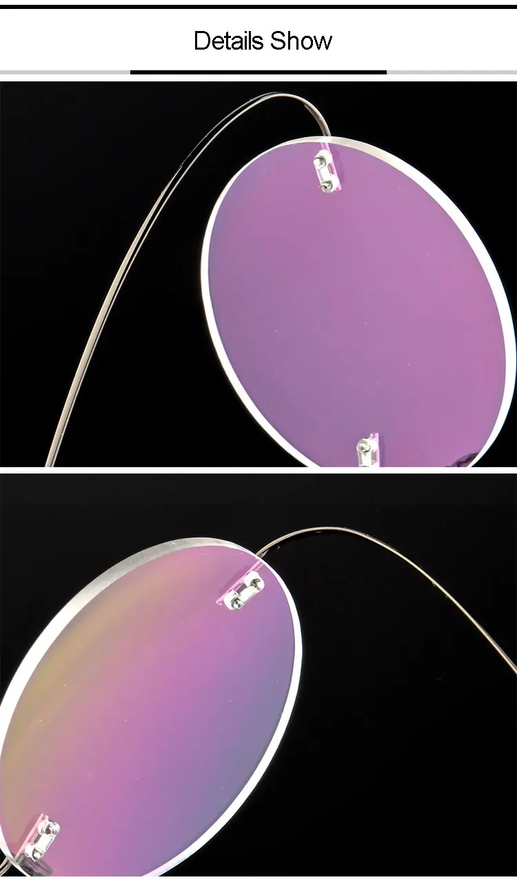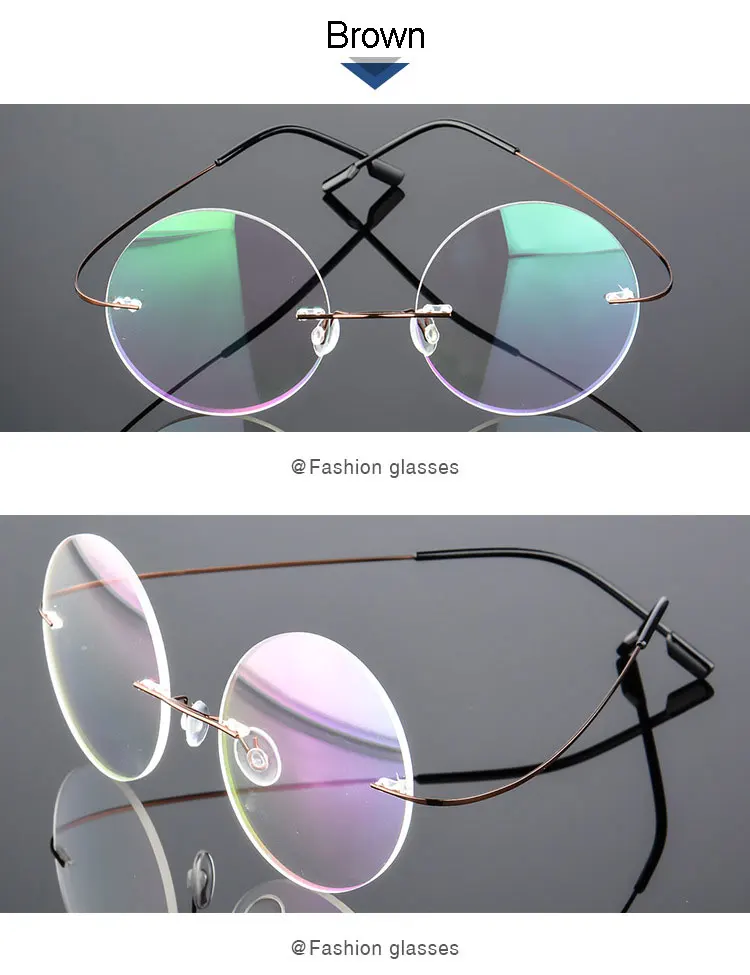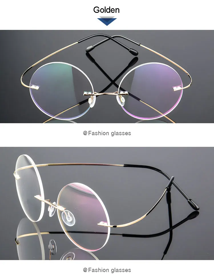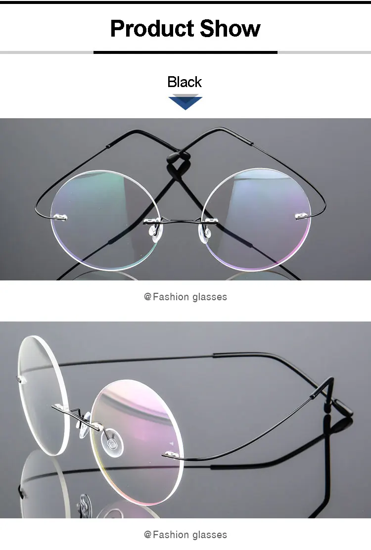 Introducing the Hotochki Unisex Round Rimless Alloy Frame Eyeglasses - the perfect combination of style and functionality. These eyeglasses are a must-have accessory for anyone looking to make a fashion statement while improving their vision.