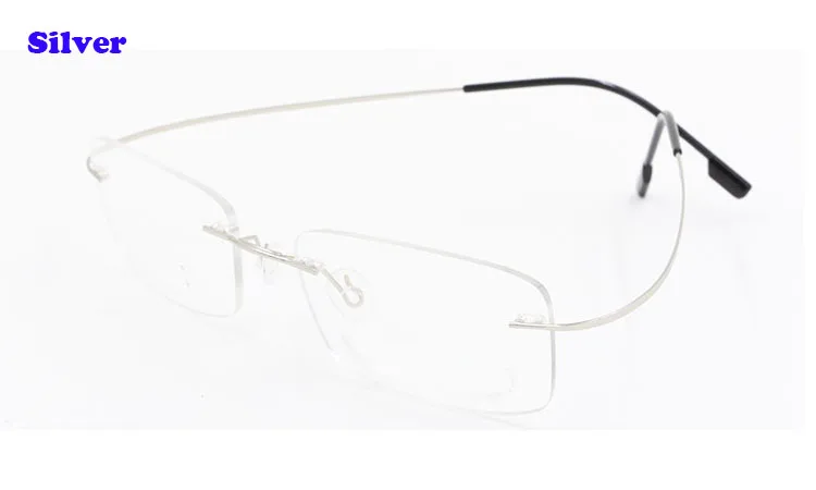 The Unisex Eyeglasses Memory Titanium Alloy Rimless Frame Flexible 763 is available in a range of attractive colors, including Gold, Black, Gray, Blue, Silver, Red, Pink, and Purple. Choose the color that best suits your personal style and add a touch of sophistication to your everyday look.