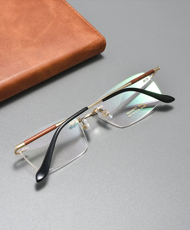 - Lightweight and Strong: Made from premium titanium, these eyeglasses are incredibly lightweight, making them comfortable for all-day wear. The addition of rosewood temple pieces offers a unique touch of elegance.