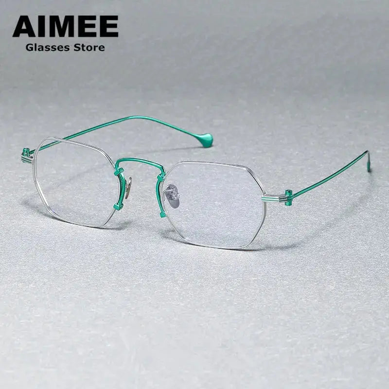 Introducing the Aimee Unisex Full Rim Flat Top Polygon Titanium Eyeglasses, model number 190069. These stylish eyeglasses are crafted specifically for those who value both fashion and functionality. Made from premium titanium, they provide exceptional durability and lightness, ensuring all-day comfort.