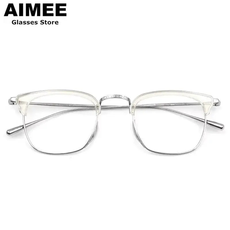 Introducing the Aimee Unisex Full Rim Square Titanium Acetate Eyeglasses, Model Number 481112. Designed for the modern individual who values both style and comfort, these eyeglasses make a bold statement while ensuring durability for everyday wear.