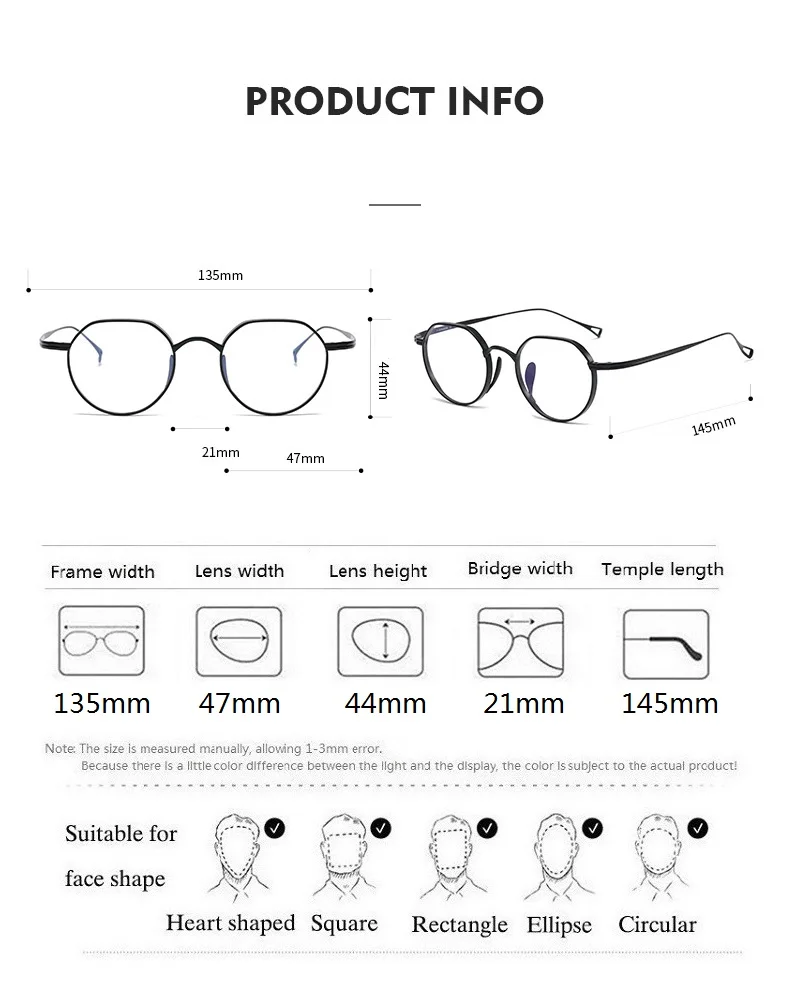 - Durable and Lightweight: Constructed with titanium, these eyeglasses are resistant to wear and tear, yet light enough to wear all day without discomfort.