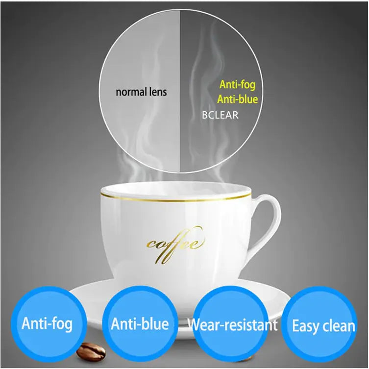 Coating:Â HC TCM UV400 EMI Anti-Blue Anti-Fog (Hydrophilic Polymer)