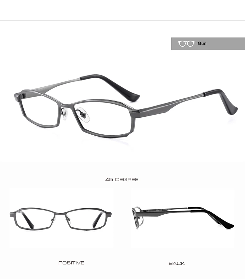 Featuring a solid pattern and crafted from high-quality titanium, these eyeglasses offer a sleek and modern look. The lightweight yet sturdy frame ensures maximum comfort for all-day wear. The rectangular shape of the frames complements various face shapes, making them a versatile choice for any style-conscious man.