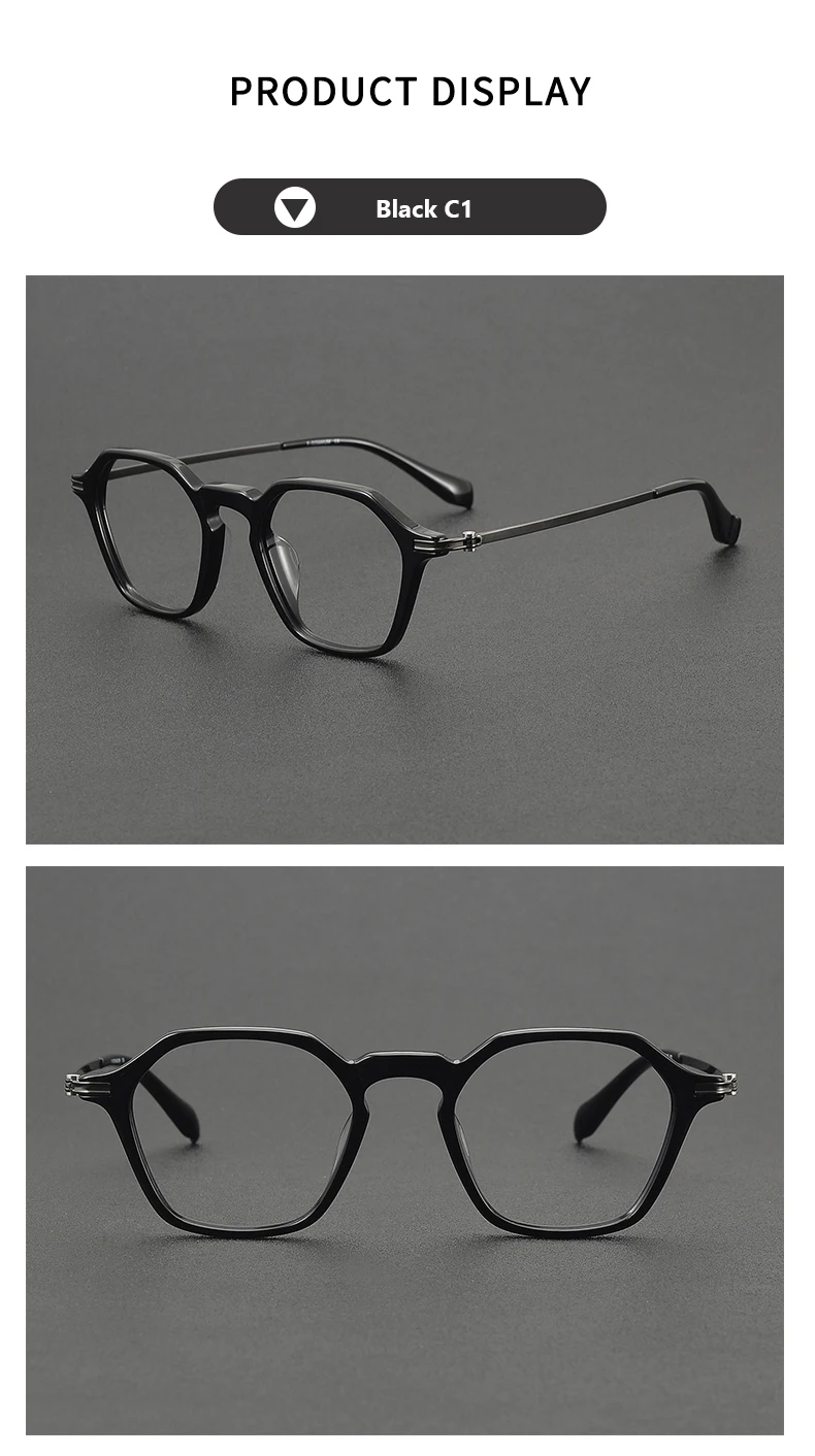 Oveliness Unisex Full Rim Polygon Acetate Titanium Eyeglasses 390013