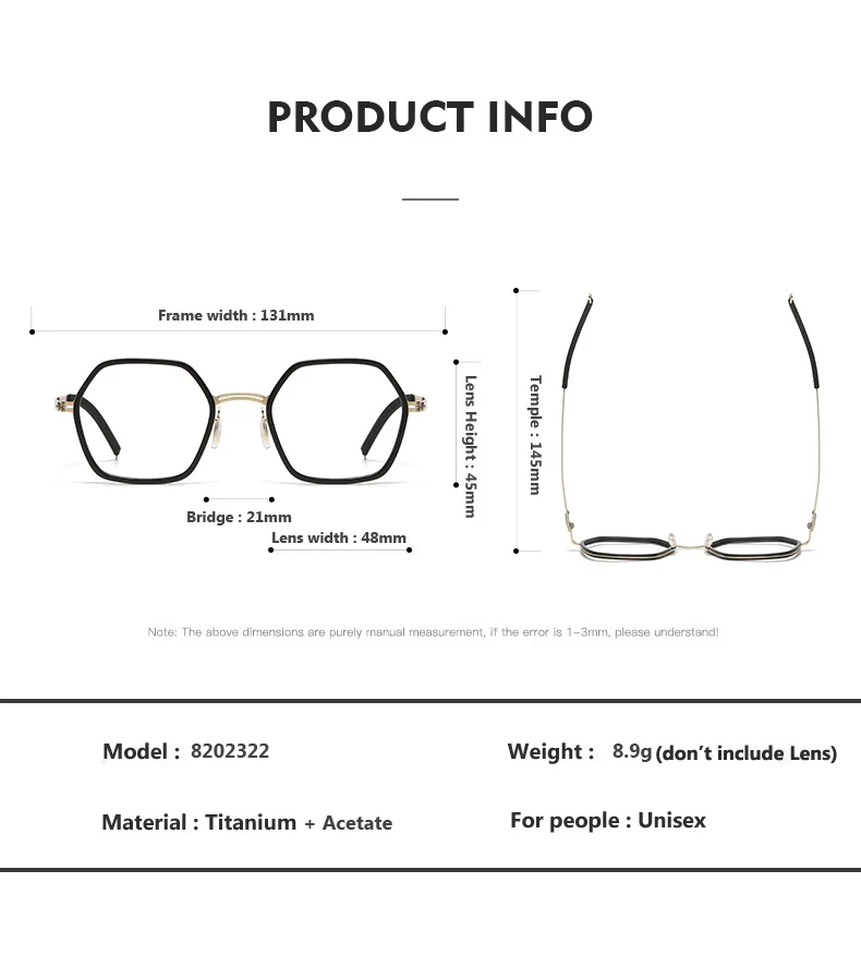 - Frame Material: Made from a premium combination of titanium and acetate, ensuring both strength and lightweight comfort.