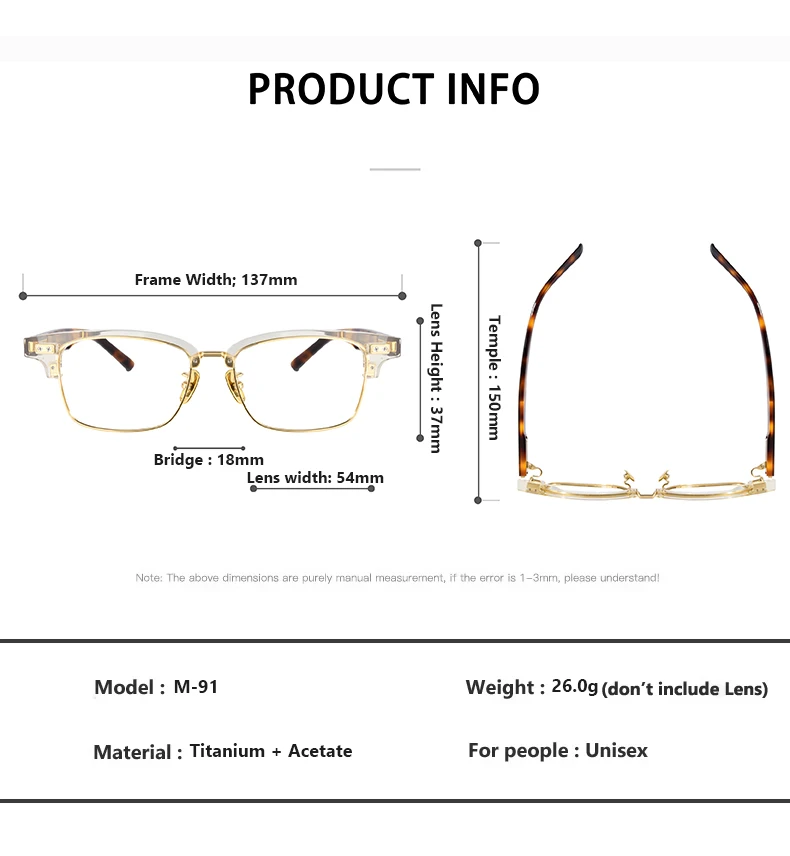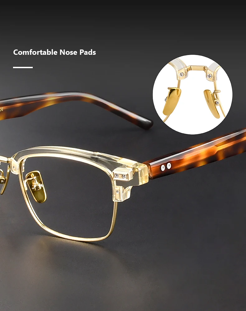 • Robust Frame: Made from a combination of titanium and acetate, ensuring durability without compromising on style.