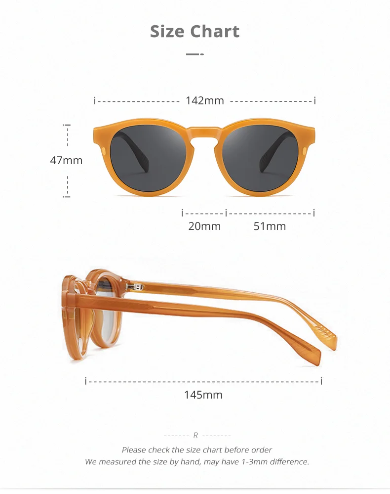 Crafted from high-quality acetate, these eyeglasses are not only lightweight but also durable, ensuring long-lasting wear. The full rim round design fits comfortably on any face shape, making them a great unisex option. The lenses feature advanced polarizing technology with UV400 protection, effectively shielding your eyes from harmful rays and glare.