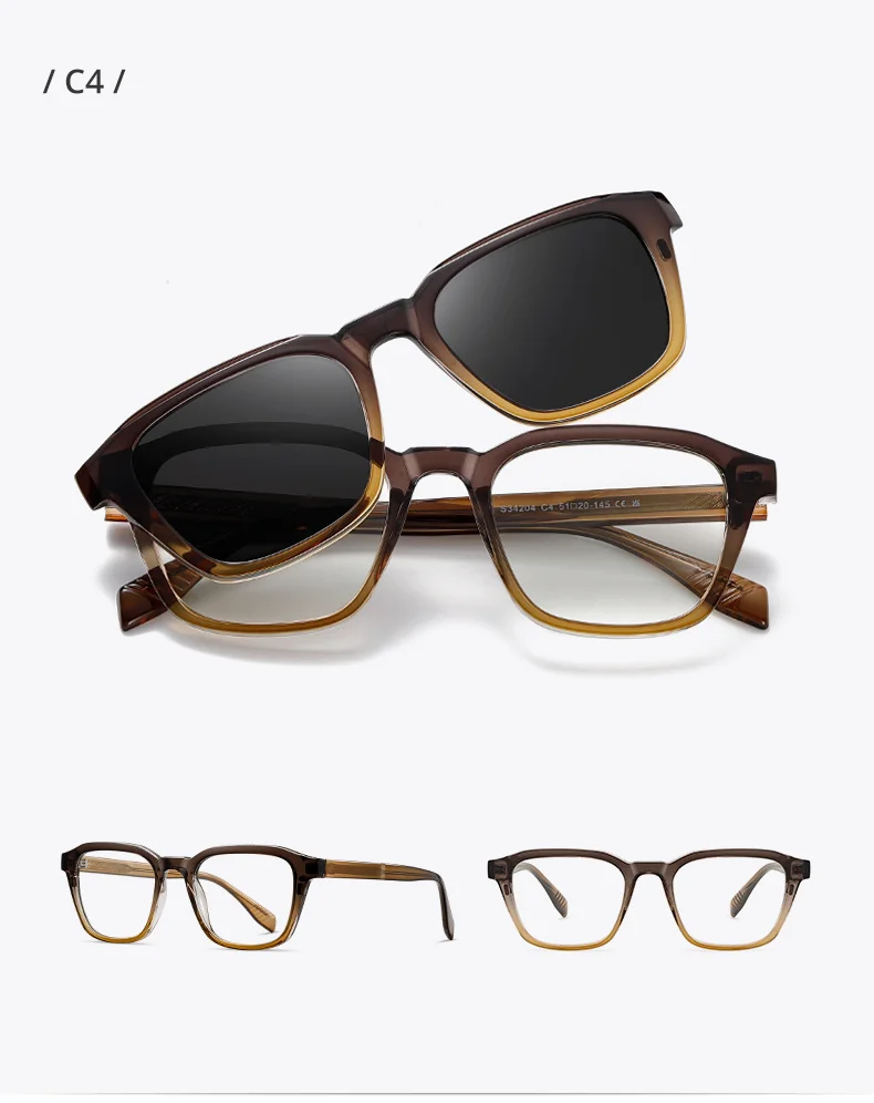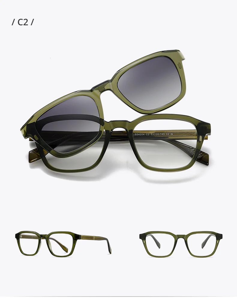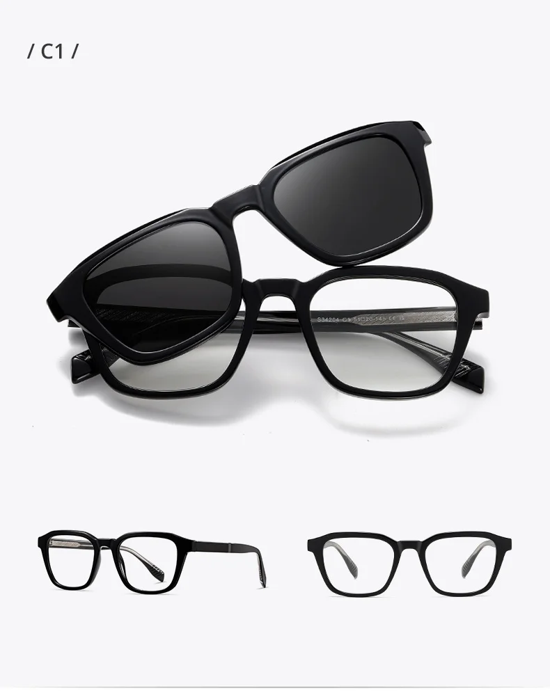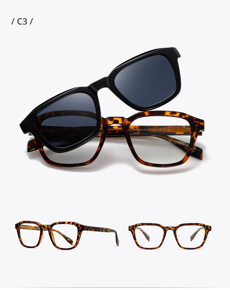 Introducing the Ralferty Unisex Full Rim Square TR-90 Alloy Eyeglasses Clip-On Sunglasses, model number 334204. These stylish and versatile eyeglasses seamlessly transition from clear lenses to attached sunglasses, making them perfect for daily use or outdoor activities.