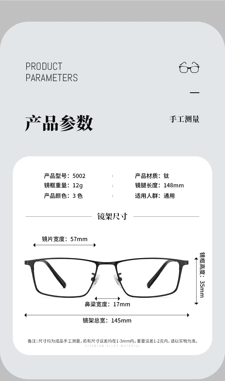 - Durable Material: Crafted with titanium, these frames are not only strong but also resistant to corrosion and scratches, providing long-lasting performance and clarity.