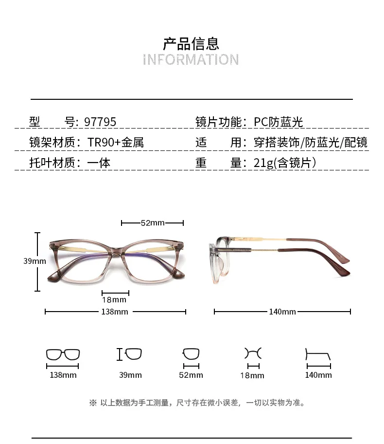 Origin: Made in China, these eyeglasses embody both quality craftsmanship and stylish design. They are available for women of all tastes, offering a versatile option to suit various preferences.
