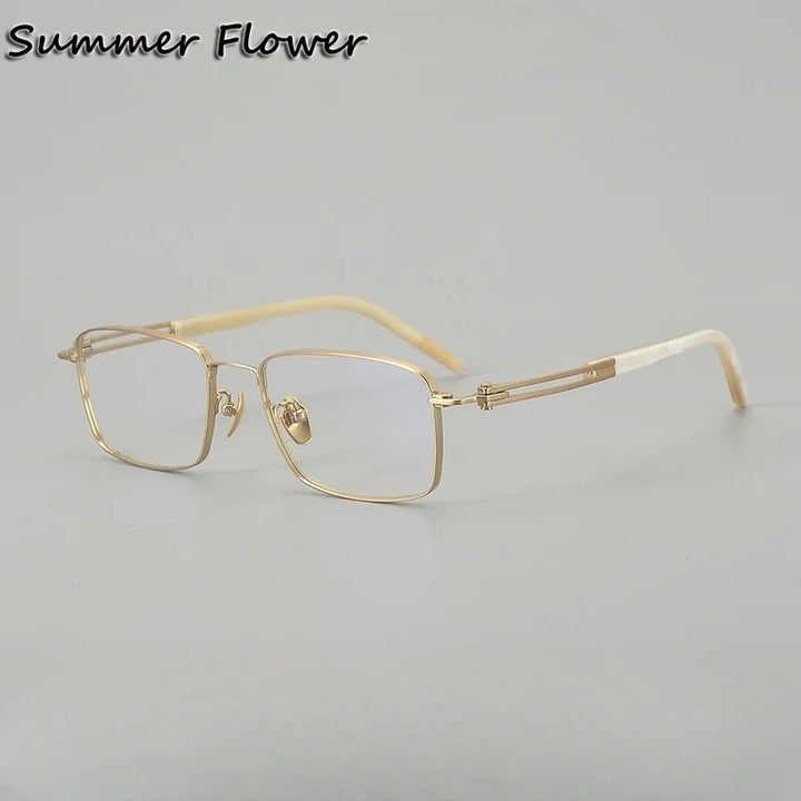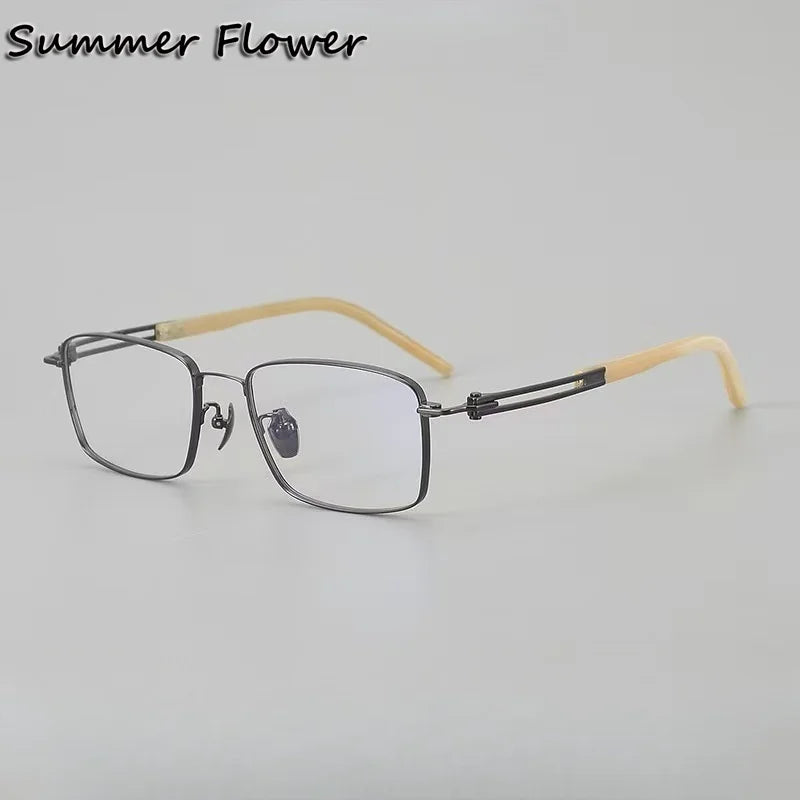 Introducing the Summer Flower Men's Full Rim Square Titanium Horn Eyeglasses, model number 611226. These eyeglasses combine elegance and durability, making them a distinguished choice for the modern man seeking style and functionality.