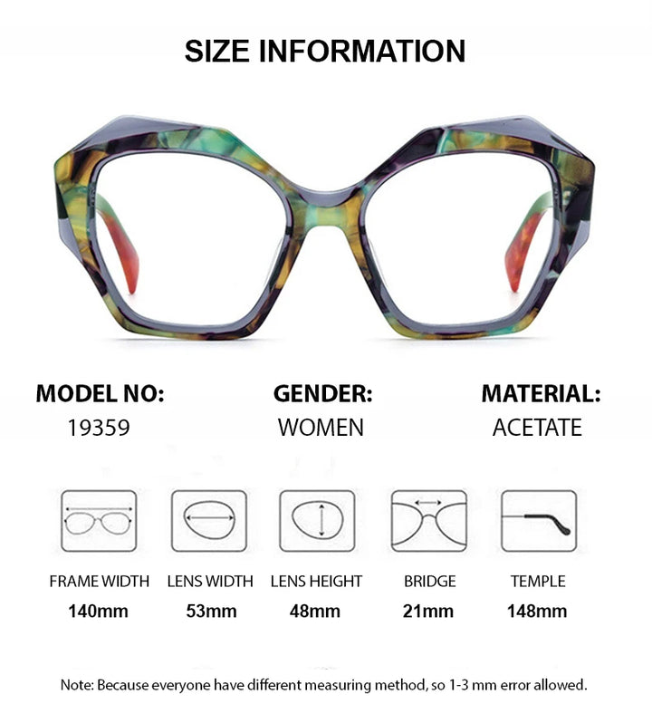 Crafted from high-quality acetate, these eyeglasses provide durability while ensuring a lightweight and comfortable fit for all-day wear. The full rim design offers a classic yet trendy look, ideal for various occasions, from casual outings to formal events.