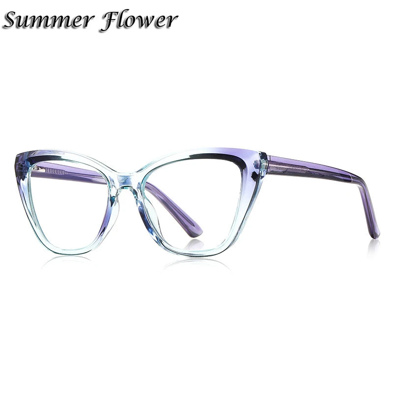 Introducing the Summer Flower Women's Full Rim Butterfly TR 90 Titanium Eyeglasses, model number 612148. Engineered for style and functionality, these eyeglasses are designed for the modern woman who values both aesthetics and comfort.