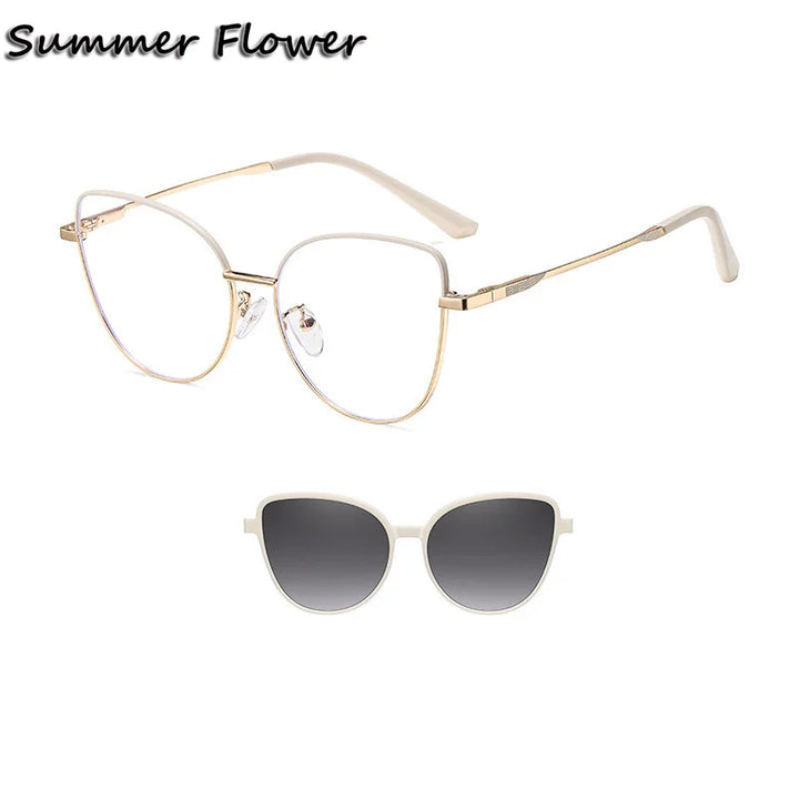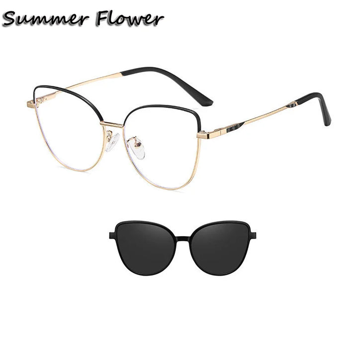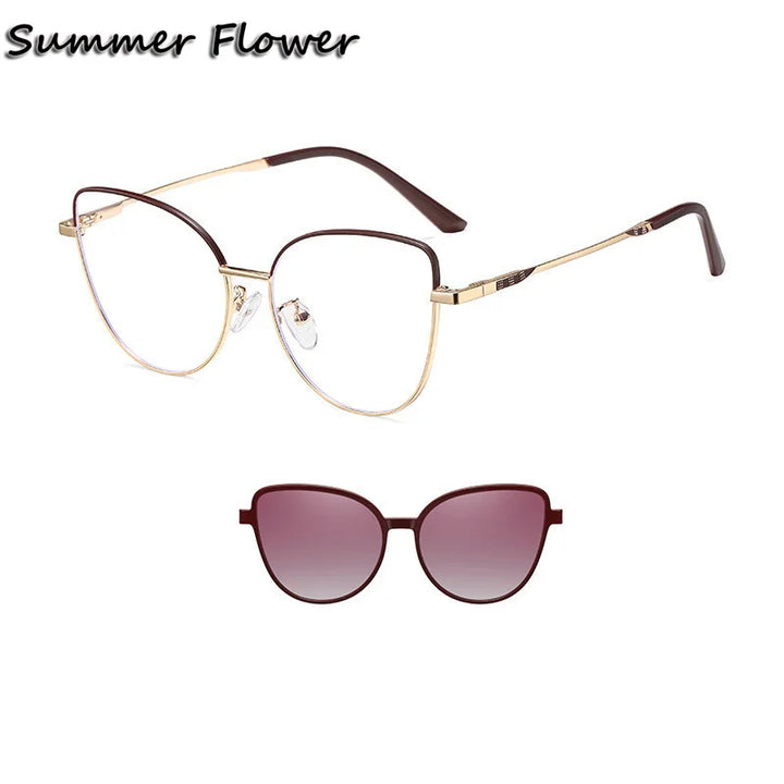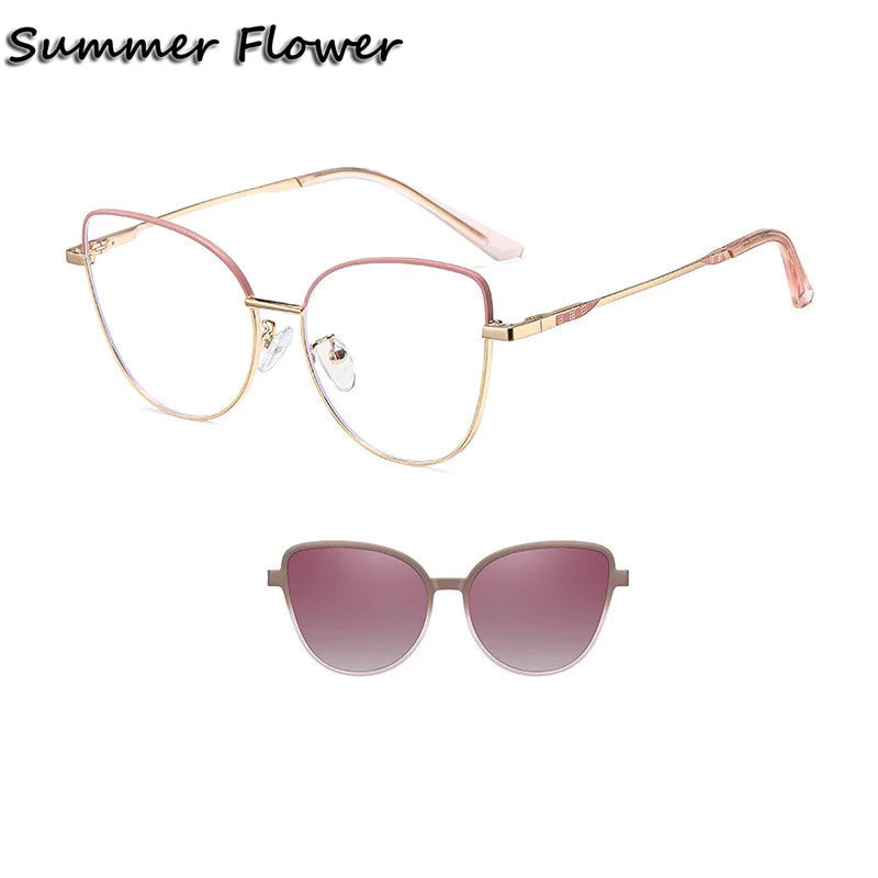 Discover the perfect blend of style and functionality with the Summer Flower Women's Full Rim Cat Eye Steel Eyeglasses Clip On Sunglasses (Model Number: 617102). Designed specifically for the modern woman, these eyeglasses provide an effortlessly chic look while ensuring optimal eye protection with clip-on sunglasses.