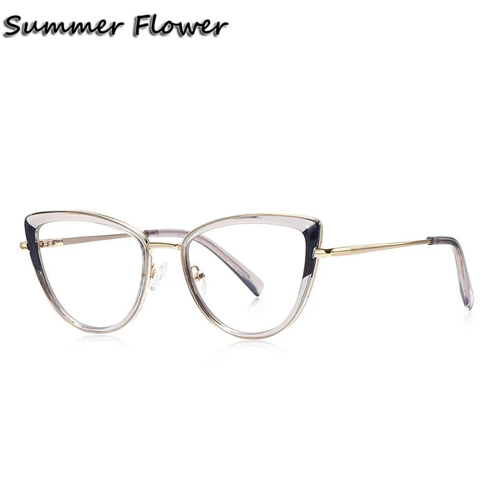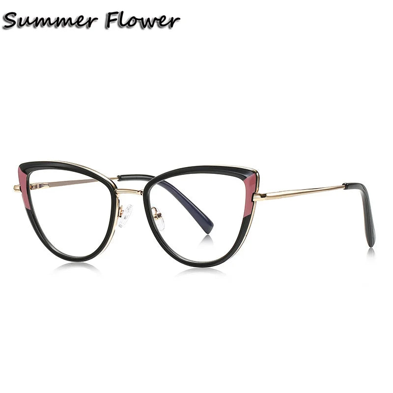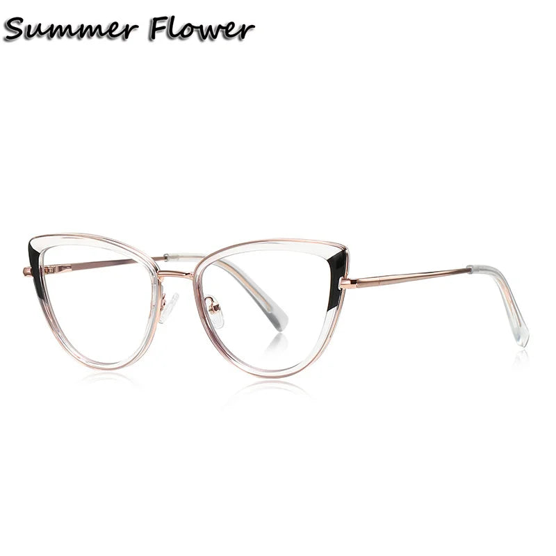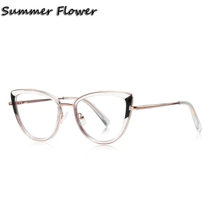Introducing the exquisite Summer Flower Women's Full Rim Cat Eye TR 90 Titanium Eyeglasses, model number 613127. These stylish eyeglasses are designed specifically for women who appreciate elegance and comfort.