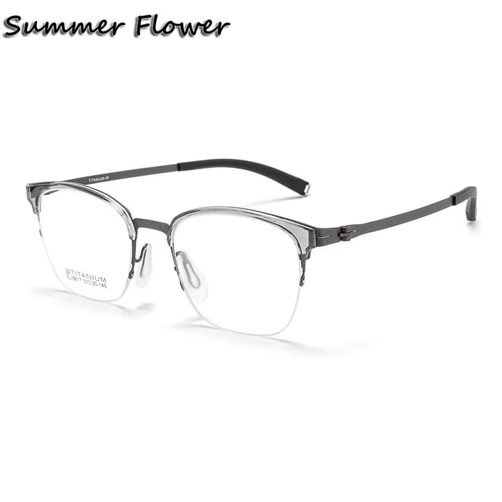 Introducing the Summer Flower Women's Full Rim Square TR 90 Titanium Eyeglasses, model number 618817. These eyeglasses perfectly combine fashion and functionality, ensuring you not only look great but also enjoy superior comfort throughout the day.